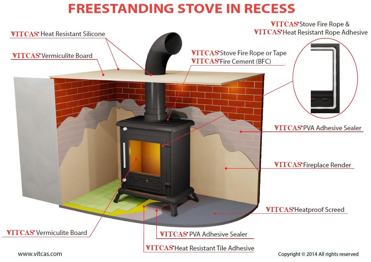 - Insulating stove walls, backs, and hearths with vermiculite or calcium silicate boards